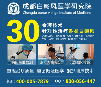 成都治疗白癜风权威医院?现在我们的现实社会发展的是非常的迅速的,可是我们周围生活的环境却是受到了很大的伤害了。白癜风的发病率也随之上升了很多的,白癜风跟其他的皮肤疾病相比较白癜风更加的顽固,治疗起来更加的需要时间的,发现白癜风就应该及时的进行治疗。下面就让成都白癜风医学研究院附属医院的专家为我们介绍一下。