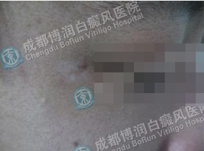 (针对病情,专家为其采用308nm激光治疗白斑,配合药离子渗透疗法及ZX-Ri自血免疫疗法,调节自体免疫力,白斑已逐渐消退)