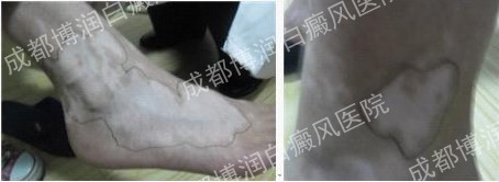 (初诊时,脚背及脚踝处白斑明显,边缘模糊)