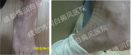 病史:李某某是个16岁的帅小伙,阳光帅气,可是脚上的白斑却给他造成了不好的影响。在李磊15岁时候,脚面上及脚踝处患上了白癜风,这让李某某的爸爸李先生很是担心。带着李某某在附近医院治疗,几月不见疗效,这让李某某有点灰心。而且白斑在脚背上越来越明显且扩散很快,小腿上也渐渐起了几个白点。考虑到孩子的未来,李某某没有放弃希望。本地治不好,就去其他城市,总有一天会治好的。多方打听得知成都有家专业治疗白癜风的医院——成都白癜风医学研究院附属医院,治疗的效果口碑都很好,决心带着孩子去试试。父子俩于2012年8月1日来到我院就诊。