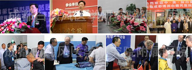 我院相继参加了第四届世界自然医学大会、白癜风临床科研与技术成果转化推广学术大会、"中华医学会第十九次全国皮肤性病年会"、"第七届世界自然医学学术大会"、"中·美·加白癜风医学专家学术访问交流暨蓝氧祛白疗法结合308准分子光临床运用学术研讨会" 等国内外重大会议上,成都白癜风医学研究院附属医院在专家、技术、设备、诊疗理念等各项软硬件实施上,都获得与会专家领导的高度肯定,并在临床科研和学术论坛上面都发挥着重要的作用。