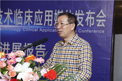 【发布会现场照片:兰长贵教授介绍毛囊技术的背景、原理、前景】